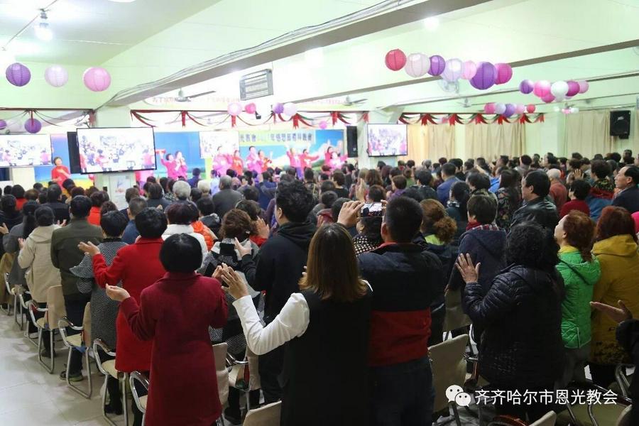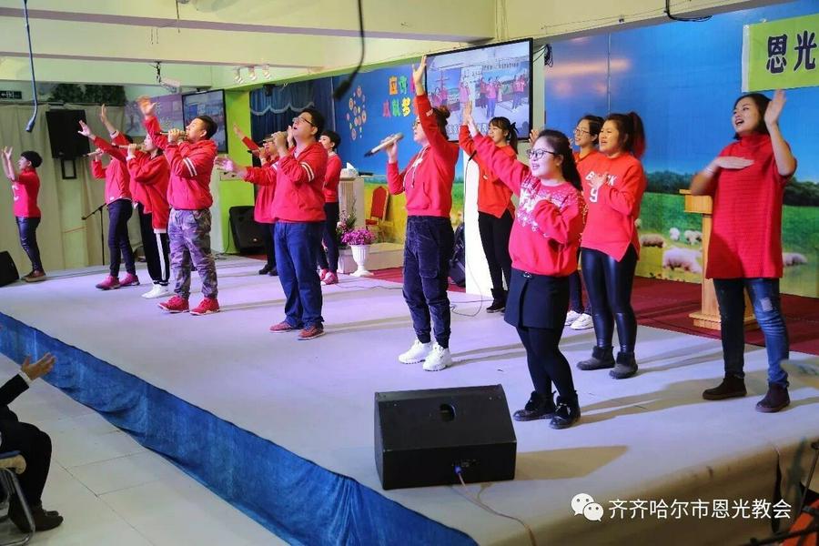 10月15日,齐齐哈尔恩光教会举办了秋收感恩节晚会,主任牧师金太成证道,弟兄姐妹们表演了舞蹈、赞美等节目。