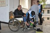 义工何美荣是以为退休医生,她为老人们量血压,还带来了昂贵的藏药,为关节肌肉疼痛的老人们涂抹。有一位老人指甲疼痛,他脱下鞋,指甲与皮肤连接处血肉模糊。何美荣用棉签蘸药,用心地敷在老人的指甲上。有一位老人脚掌肿胀穿不上新鞋,何美荣弯下腰,为老人脱鞋,耐心地把鞋往里挤,直到为老人穿上。