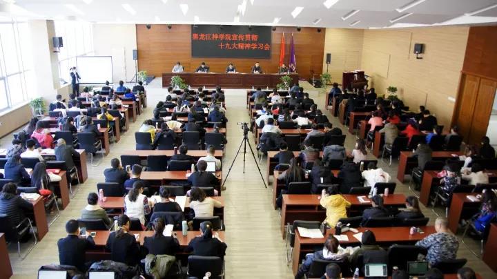 2017年11月3日,随着“十九大”的胜利闭幕,黑龙江省及哈尔滨市宗教局高度重视并积极开展“十九大”精神进校园活动,带领黑龙江神学院师生深入学习“十九大”会议精神。出席此次会议的主要领导分别是:黑龙江省宗教事务局二处马国利处长、哈尔滨市民族宗教局刘淑梅局长、李士东处长、王升辉处长。