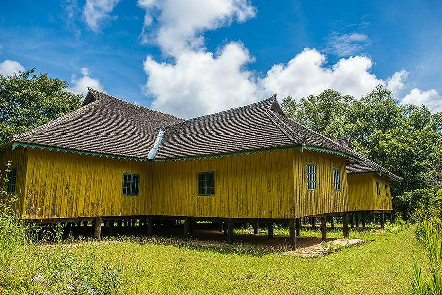 离开了那个信徒家,我们在路边吃了午饭,随后就去糯福教堂。这座教堂也是建在山上,沿着台阶上去、穿过树林,就看到了那座传说中的拉祜族建筑风格的教堂。黄色的外观在蓝色天空的映衬下显得更加耀眼,但四周十分安静,野草和绿树丛生,能听到鸟鸣。在野外,小虫子也很多,和笔者一同前去的摄影师就被蚊子咬了几个大包,但看到这么美的教堂,惊叹之余,他最开心的时刻就是拿着相机、选取不同的角度拍个不停。