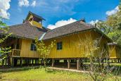 到了糯福乡,笔者和教会同工去探访了一户拉祜族信徒家庭,那个村宛如世外桃源,民居依山而建,四周树林茂盛,均为一层半的木质小楼,是竹木结构的木桩斜顶房。靠近地面的半层为堆放木材等杂物的地方,上楼后有客厅、卧室和厨房,饮食起居都在一层,客厅的一侧是居室,另一侧有火塘,以便做饭和取暖。