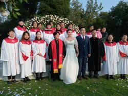 11月12日,星期天下午14时,本堂牧师、同工、唱诗班一行总计18人受邀请为这对新人开证婚礼拜,本次活动是第一次在露天举行的仪式,本次活动由邵东利老师主持,顾藕芬牧师讲解了婚姻中的意义,运用圣经经文告诫双方,夫妻关系表明着基督与教会的关系。夫妻是成为一体的关系,因为基督与教会是成为一体的关系。在这个关系中,基督是教会的头,教会是基督的身子。基督爱教会,为教会舍己;教会顺服基督。所以丈夫是妻子的头,要爱自己的妻子,保养顾惜妻子,为其舍己;妻子要顺服敬重自己的丈夫。唱诗班献唱《恭行婚礼歌》《耶和华祝福满满》。
