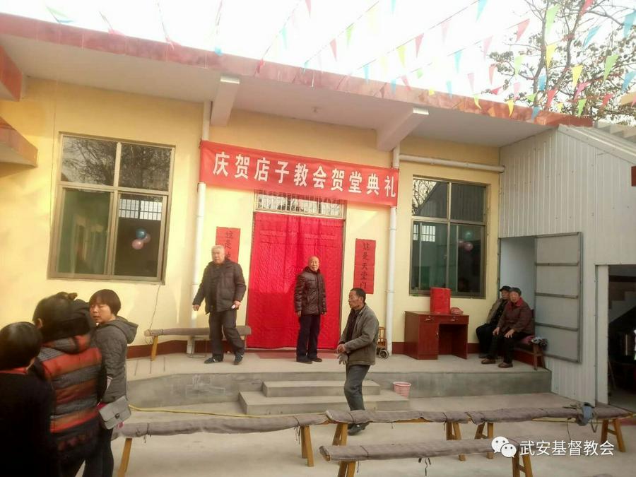 2017年11月16日,风和日丽,初冬的阳光仍然暖暖的照在人的身上,在武安市洺湖湖畔的店子村边,一座刚刚竣工落成的小教堂屹立在店子村的西南边,这座小教堂经过了一年多的紧张施工,现在终于竣工了。今天,这里张灯结彩,正在举行着贺堂典礼仪式,武安市基督教两会的长老出席了仪式,并为新教堂作了祝圣祷告。