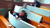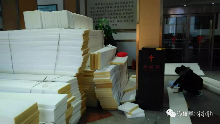 感谢神,恩典满满!经过大家的共同努力,福音堂座垫工作已经进入尾声。大堂三百多条长椅已经全部铺上了崭新的座垫,培训教室的椅子垫也基本完工。头一天只做了三十多条,照此进度预计要做十天左右,没想到仅用了三天就要完工了。