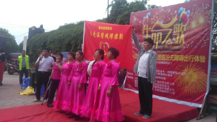 这些残疾人还是有一定特长的,有一个周爱玲姊妹,非常热心,特别爱学习,有上进心,她自费去老年大学学习,她腿不好,拄着一个拐,脚是这么扭着,骑个三轮,特别不方便。开始老年大学不要她,后来被她的精神感动了,她的丈夫也是残疾人。这个姊妹非常爱音乐,爱神,每年也都积极组织筹办节目。