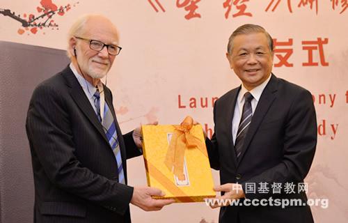 最后,基督教全国两会与来宾互赠了礼物并拍照留念。据悉,美国十字架之路出版社出版的《英语标准译本研修版圣经》由95位海外备受尊重和具代表性的基督徒学者和教授共同注释,全书共300多万字,包含2万条全新的、见解独到的注释、8万条经文参照和索引、200幅地图、40多张插图等内容,体现了当今圣经研究领域的最新成果,也是注释最为全面、版面色彩最为丰富的研修版圣经,成为当今英语国家最受欢迎的版本之一。《圣经(研修本)》首发当天3500本库存销售一空,随后将在各地圣经发行点面向信徒销售。但愿圣灵使用这本圣经,让上帝的话语成为读者“脚前的灯”和“路上的光”。