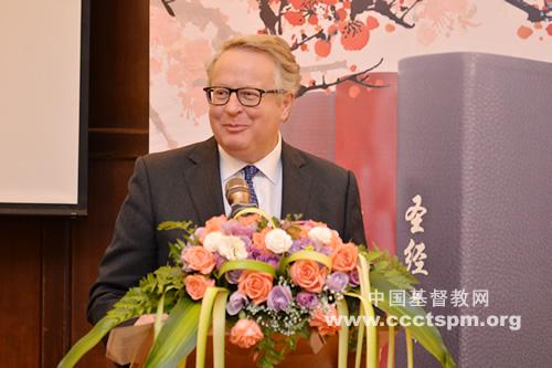 在致辞环节,傅长老回忆当初在访问美国十字架之路出版社时,便被内容新颖丰富、印刷精良的《英语标准译本研读版》所吸引,期望能够引进造福中国教会。傅长老讲到,中国教会一直具有热爱《圣经》、高举圣言的传统。改革开放以来,基督教全国两会致力于做好圣经出版事工,迄今出版发行了多个版本、不同规格的《圣经》近八千万册,特别是近五年来,以每年四百万册的印量成为世界上年圣经发行量最多的国家之一。《圣经》虽然影响广泛,但由于历史、地域、文化等差异,今天在人们恭读《圣经》时,难免有不少“难明白”之处,因此需要帮助。这些年来,中国教会除了出版一些圣经注释类书籍之外,特别也注意引进和出版一些附有解释的圣经版本,这对于方便大家更好地理解上帝的话语无疑是大有裨益的。