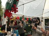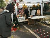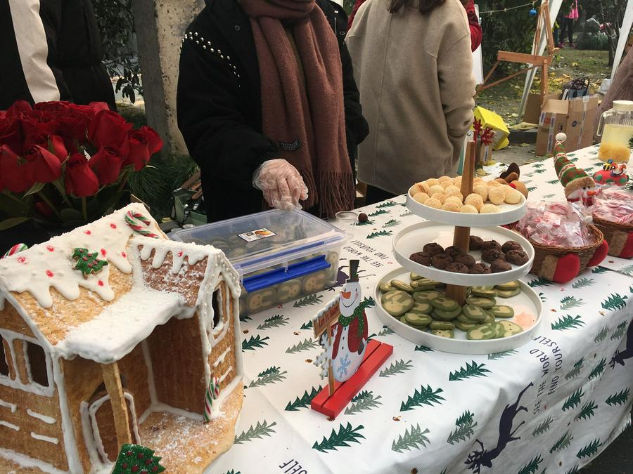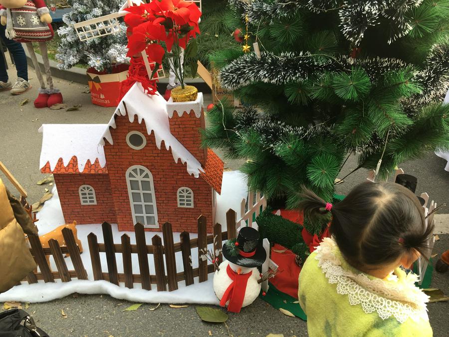 到了,先拿出手机拍几张美照:漂亮的圣诞树、可爱的糖果小屋还有挂满了整个市集的五角星和雪花。饿了,取食几块抹茶饼干,嗯,味道很不错,向厨师道声谢,再喝杯柠檬苏打水,神清气爽。逛到下一个,要一张喜欢的明信片,感觉像抽年度应许经文似的,属灵也得到了很大的满足。小朋友们这逛逛,那看看,乐不可滋。