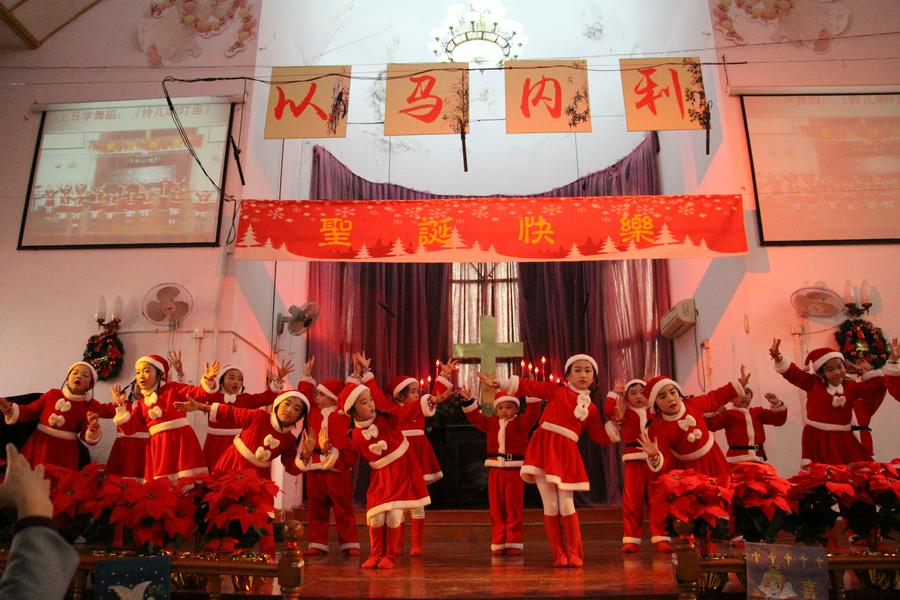 下午1:30—3:00是圣诞节节目演出,有主日学舞蹈《铃儿响叮当》、二胡齐奏《生命美果献给主》、常青树团契舞蹈《一颗爱你的心》、女声独唱《无怨无悔》、诗朗诵《圣诞感恩颂》、歌舞《满有能力》、圣剧《救主降生》、舞蹈《奇异恩典》等节目。