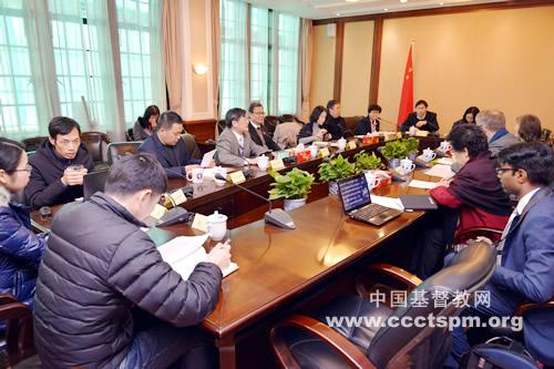 客人饶有兴致的听取了介绍并作出回应。维特表示愿意在神学教育上继续支持中国教会,希望世基联出版的《普世社会服务》手册能够给中国教会启迪,共同为全人类带来尊严与权利服务。维特还邀请中国基督教两会关注和参与世基联开展的与中国教会相关的社会服务事工,共同关注贫困、公义、公平等社会问题。世基联亚洲区主席张桑牧师(Rev. Dr. Sang CHANG)表示此行真切感受到中国教会在增长,希望通过走访促进互相了解;并对正在召开的朝韩高层领袖会谈表示关注,希望普世教会共同祈祷,为世界和平努力。世基联跨宗教对话项目主任毗努伊勒·拉杰库马尔(Rev. Dr. Peniel RAJKUMAR)表示很高兴随团访问中国,并简要介绍所参与的跨宗教对话项目情况。