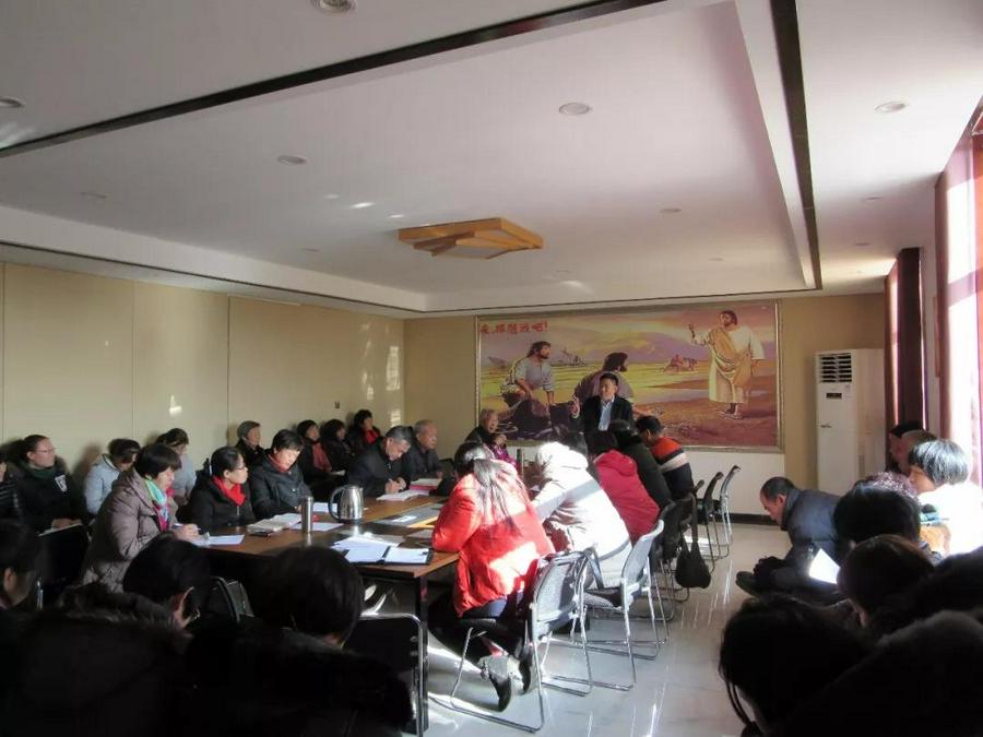 2017年12月31日,赵县基督教两会召开本年度最后一次同工例会,冯摩西牧师主持本次会议,参会的教牧、传道、义工有54人。王书霞姊妹带领唱诗《主啊,我赞美你》,魏来恩长老会前祷告,感恩岁首到年终主的带领,大家对主满了感恩和赞美。