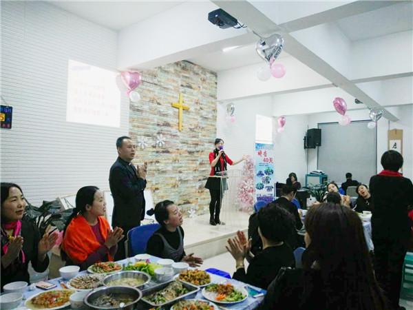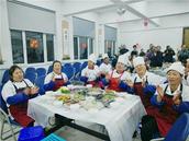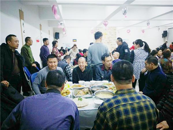 经过刘牧师的谢饭祷告后,喜乐的爱筵正式开始!150位同工拿起筷子,欢喜的品尝着上帝的恩典,他们脸上洋溢着灿烂的笑容,心中充满了无限的感恩,喜乐温馨的气氛洋溢在整个小礼堂。
