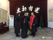 马建华牧师、郑少华牧师分别为新牧师佩带圣带、赠送圣经。