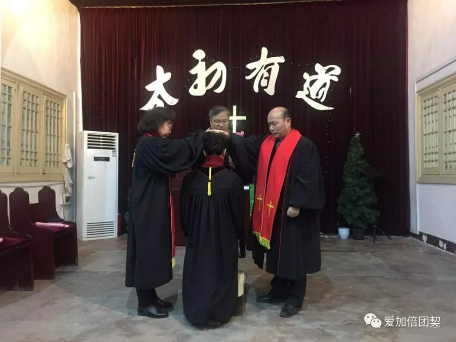 安徽省基督教协会2018年2月1日上午在安庆圣诞堂举行按立副牧师圣职典礼,张兰英、孙进冬两名同工被按立为副牧师。