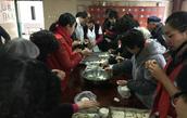 第一波节目未了,第二波包饺子活动开始了。只见几个姐妹排好桌椅,把准备好的芹菜肉馅和饺子皮放在上面,志愿者和腰鼓队的阿姨们争先恐后抢着包饺子。有的是包饺子能手,就手把手教初次包饺子的人;有的能把饺子包成不同花样,让人看了就垂涎欲滴;有的一边包饺子一边唱诗,使饺子的味道变得更加香醇。饺子包到一半,食堂师傅就把第一锅水煮沸了,唰唰唰,先包好的饺子早在热锅里跳跃,一会儿,食堂师傅就把一碗碗鲜美的饺子送到了一个个老人的桌上,老人们已经迫不及待,一口一个饺子,连连说好吃好吃,希望你们下次再来。