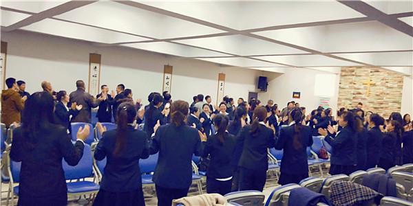 晚上6:00,谦卑礼在小礼堂拉开帷幕。本次谦卑礼由罗伊师母带领敬拜;由刘雪松牧师分享经文;由秘书处的同工接待服侍;由王殿芬和邹志方执事分别做了礼前和礼后的代祷。参加本次谦卑礼的都是东风堂的教职人员,约70人。