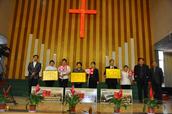 张合安牧师、张宜敏牧师、鹿存金牧师、张晓辉牧师等为获奖单位颁发奖牌和奖品。