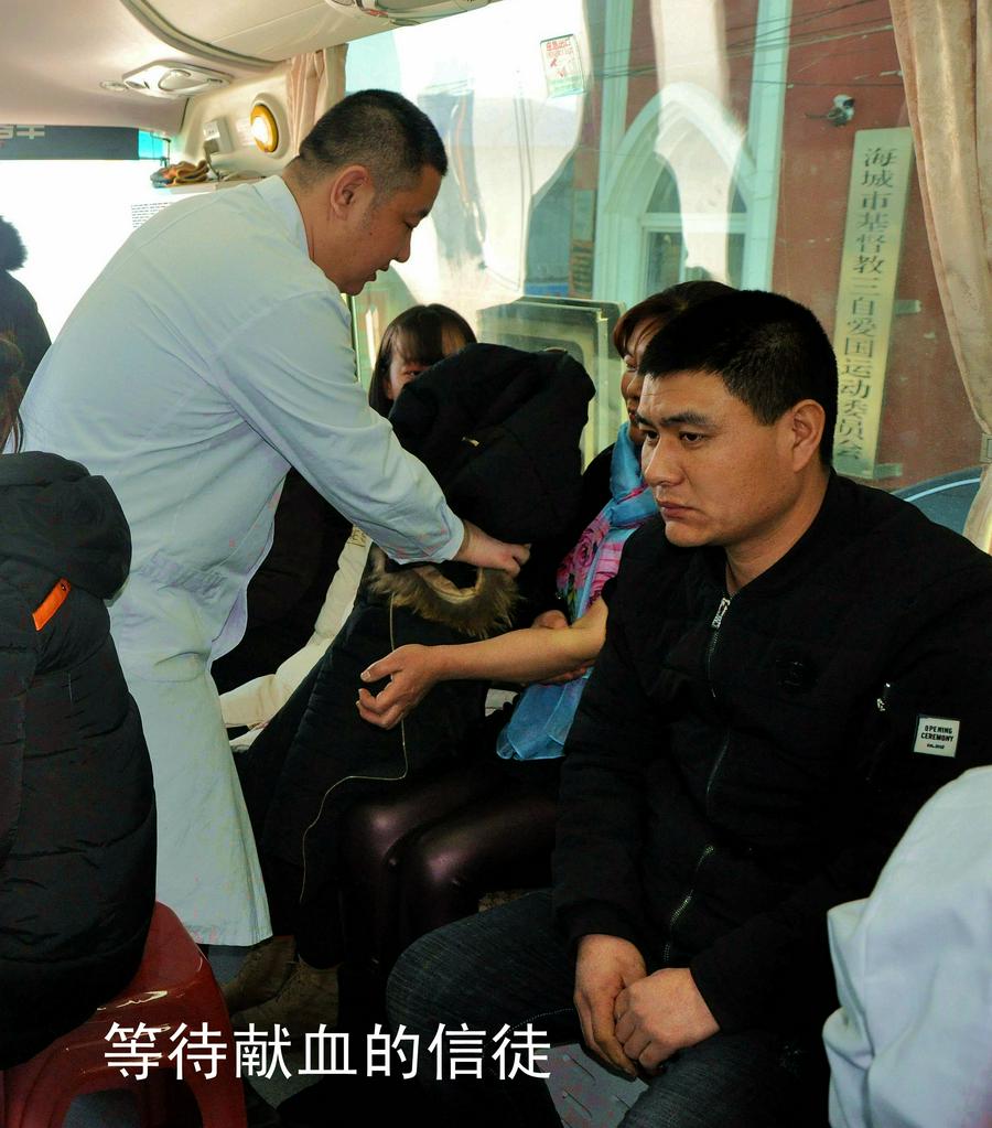 2016年底,海城地区血库及全市各大医院出现“血荒”,在此紧要关头,海城基督教两会立即组织了600多信徒进行无偿献血,共计60,000毫升,极大的缓解了即日期间医疗的需要;2017年寒冷的冬季,还有三天即将春节,海城血站再次告急,血库存血几乎为零。在这关键时刻,海城基督教两会再次组织了400多信徒进行无偿献血;今年2月,也是春节前夕,海城基督教两会再次组织了沐恩堂、北关教会、南台教会、感王教会、西柳教会等几十个团契的信徒,集中到两会所在地沐恩堂献血,共计25,000毫升,又一次极大的缓解了海城市医院用血的缺口。