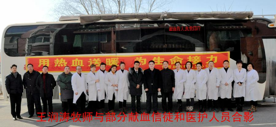 经上记着说:“行善,在好事上富足,甘心施舍,乐意供给人。”(提摩太前书 6:18)辽宁海城基督教两会以主席王润涛牧师为首,两会和各教会的负责人、传道人、信众不忘圣经的教导,从2016年开始连续三年无偿为社会献血,受到地方政府和社会的一致高度赞扬和好评,把福音以实际行动传给世人。
