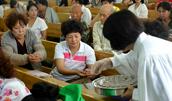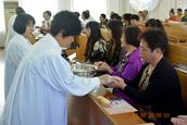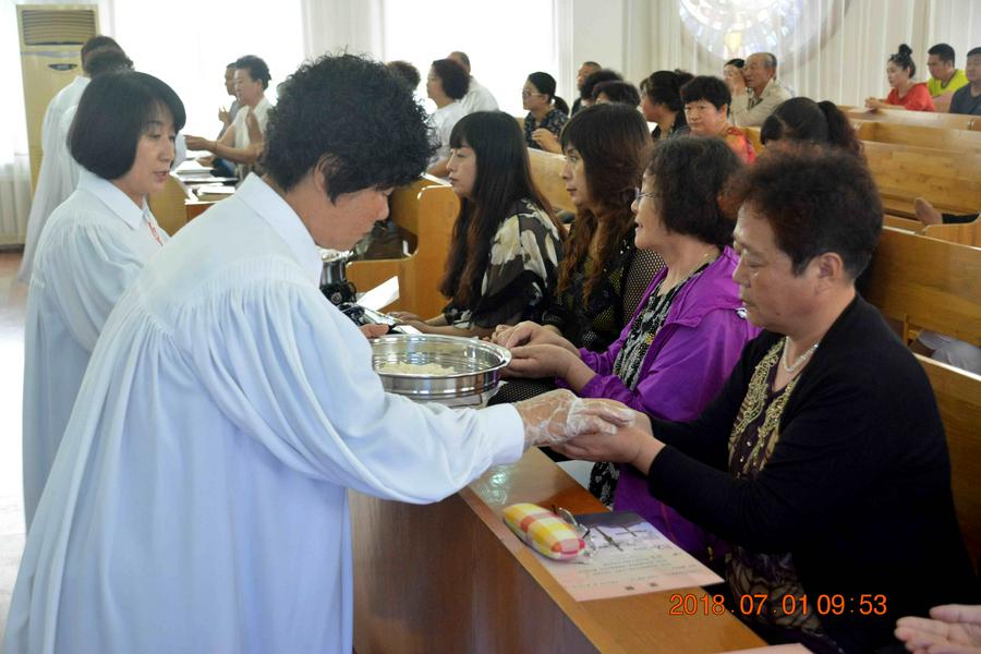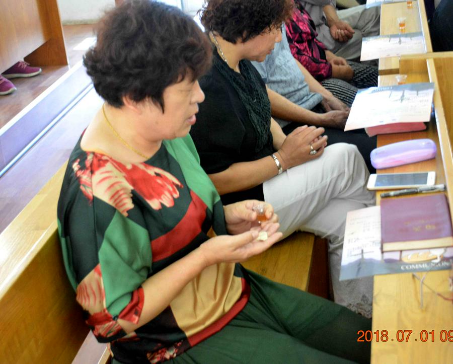 7月1日,恰逢岭下教会的圣餐礼,这天早晨6点多钟服侍的同工和会众就陆续来到能容纳2,000余人的三层大殿,歌诗赞美、读经祷告。上午8点半左右,在郑广毅牧师为主证道后,擘饼、饮杯的圣餐礼开始。整个圣餐仪式被圣灵充满,有忧伤、有喜乐、有敬拜、有认罪祷告,会众齐声赞美、感谢主的恩典。