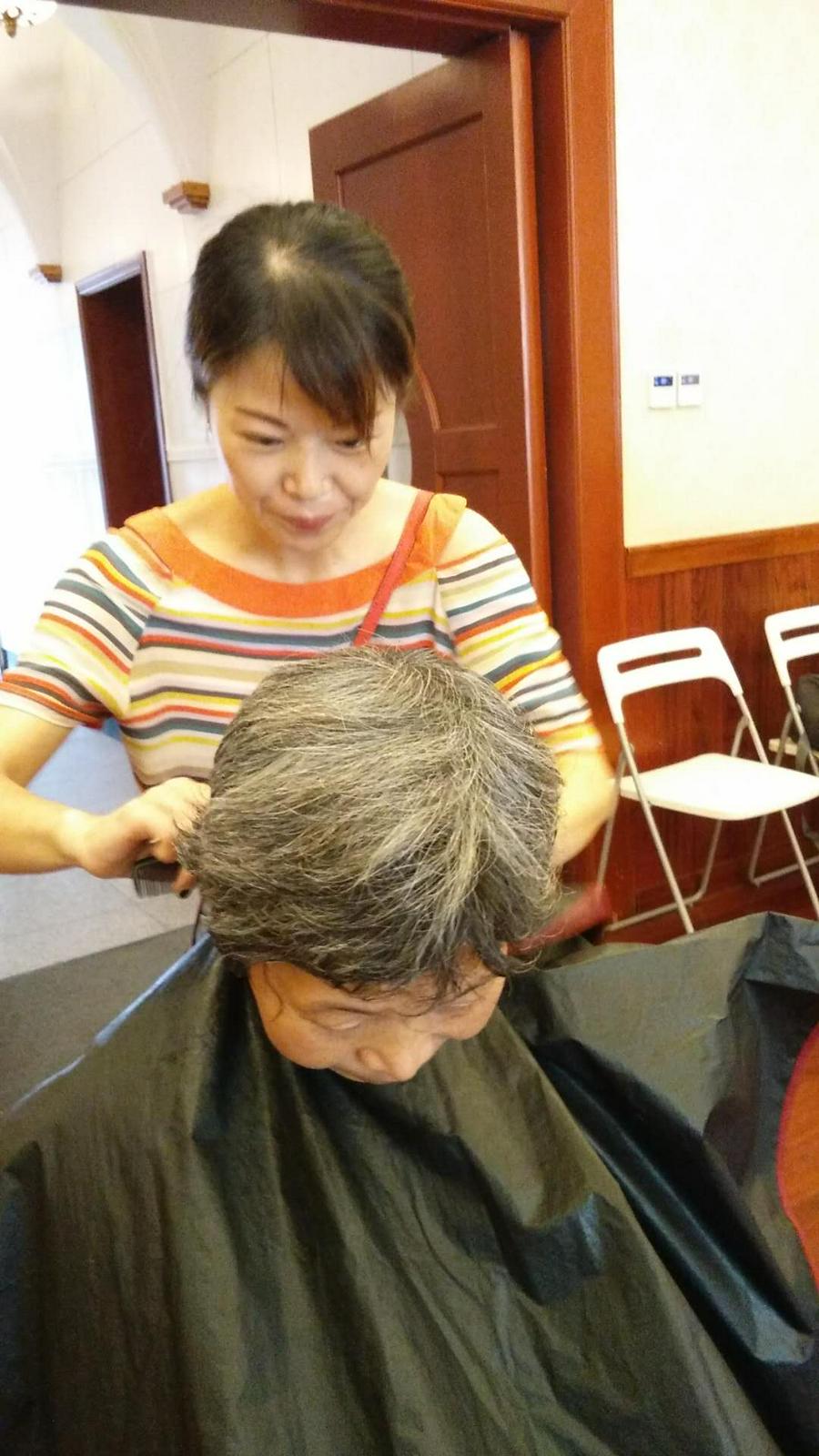 这次义工理发活动由教会发起,由既有理发技艺,又有爱心的八位弟兄姐妹自愿报名组成。其中,年龄最大的是一位77岁的姐妹,最小的是一位42岁的姐妹;另外有两位弟兄,一位65岁,一位51岁。