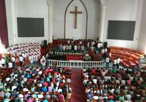 聚会中,有献诗《一生跟随》《我们要祷告》,圣剧组小品《你为何信》,赞美会上有四人决志归主。