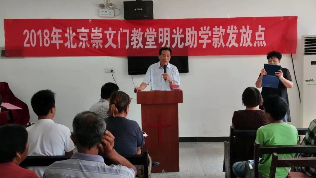 2018年8月28日,北京崇文门教堂明光助学款发放仪式在安徽省明光市明光基督教堂举行。