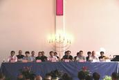 庆典分为三个部分:第一部分感恩礼拜由城东基督教堂顾玉萍长老主持,无锡市基督教协会会长李鹏飞牧师应邀以《往下扎根,向上结果》为题证道,殷切勉励教牧同工、弟兄姐妹在基督里竭力追求长进,要更新自己内在的生命,一步一步提高自己的属灵境界,为基督教中国化作贡献。