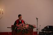第二部分感恩庆典由江阴市三自爱国会秘书长顾周荣牧师主持。应邀出席的领导和嘉宾有无锡市基督教协会会长李鹏飞牧师、江阴市民族宗教事务局陈雪源局长、江阴市民族宗教事务局李放副局长、江阴市高新区党群工作部徐岳明部长、江阴市高新区党群工作部张燕副部长、江阴市三自爱国会戴亚萍主席、兴化市基督教三自爱国会主席徐福奇牧师、江阴市天主教爱国会主任吴洪发神父、江阴市佛教协会副会长兼秘书长林华居士等。江阴市三自爱国会副主席兼城东基督教堂负责人黄忠伟致辞并介绍城东基督教堂建堂情况,江阴市基督教三自爱国会戴亚萍主席,无锡市基督教协会会长李鹏飞牧师,江阴市宗教局陈雪源局长等领导嘉宾做热情洋溢的讲话。