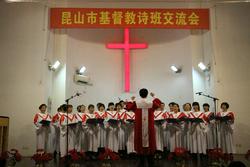 交流会由牛琦弟兄主持,朱华牧师带领大家祷告。由昆山市基督堂诗班以诗歌《天耀中华》拉开帷幕,接着有淀山湖、周庄、锦溪、千灯、张浦、石浦、陆家、花桥、石牌、巴城、陆杨、开发区、宗仁卿、富华园各教会诗班先后献唱。每个诗班都作了精心的准备,他们带着天使般的笑容,伴着美妙的音乐,唱出了一首首优美、感人的诗歌。