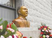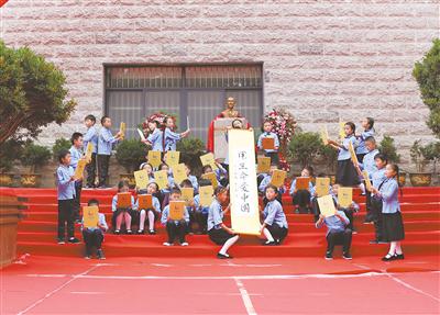 最后由东风小学校长李玲带领全体师生在铜像前郑重承诺:以先生为榜样,做爱岗敬业的东风人;以先生为楷模,做乐于奉献的东风人。