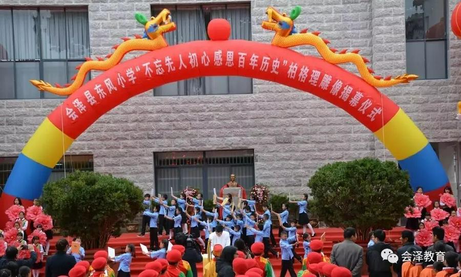 2018年10月10日,柏格理先生铜像揭幕仪式在云南省曲靖市会泽县东风小学隆重举行。会泽县副县长熊凤、县政协副主席尹正祥、县教育局局长张宏等领导出席。