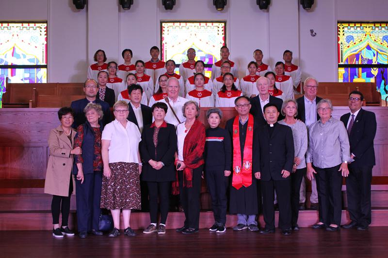10月21日上午,美国威明顿教会一行参加江阴扬子江国际礼拜堂主日崇拜,无锡市基督教协会会长李鹏飞牧师主持,江苏省基督教两会副主席兼秘书长史历牧师以《看得合乎中道》为题证道。主日崇拜结束后美国客人并参观了江阴扬子江国际礼拜堂,当美国客人看到江阴新建漂亮的国际礼拜堂时非常的感恩,看到了江阴教会福音的兴旺而由衷的感谢上帝。最后,双方互赠礼物。