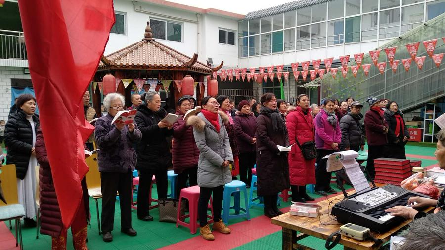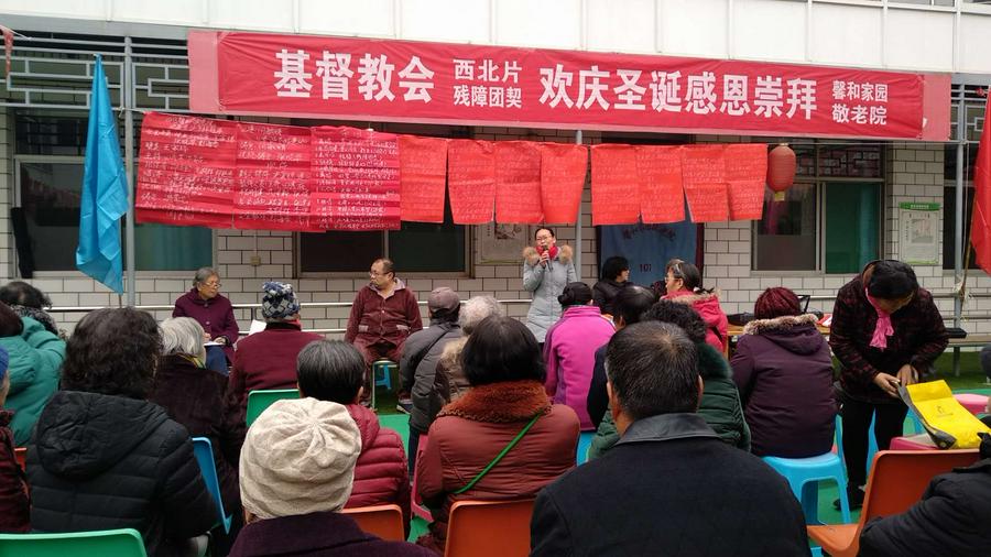 一大早,来自城区的信徒陆续分别坐公交、步行或骑车来到这里。虽然天气寒冷,大家毫无疲累,笑容挂在脸上。院里的住宿老人精神抖擞,一个个像小孩子一样,心情激动,如同见了久违的亲人不停地说这说那。此后大家围坐一起,唱诗歌颂,《平安夜歌》《新生王歌》《圣诞佳音》……,嘹亮的歌声四处飘荡,喜乐的愉悦溢满心头。