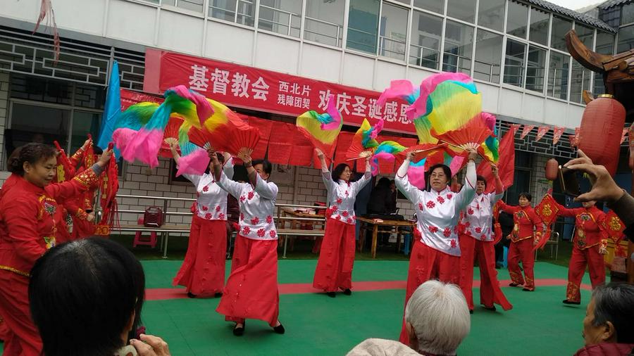 此后来自小麦所、龙潭小区、市政等聚会点的姊妹们,先后表演了自己精心准备的舞蹈节目,她们身着具有浓郁中国特色的民族服装,曼妙的舞姿,动听的歌声,将节目气氛推向高潮;残障团契的同工们也积极参与,精彩表演不时赢得阵阵掌声。