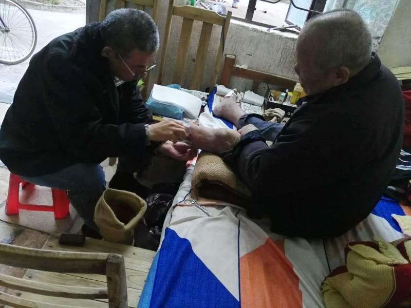 这个康复村在大山深处,高弟兄开三轮车到大山外面为老人们购买生活用品,在开车的时候,因一小虫飞进眼晴里,在揉眼过程中,因按电门大了,出了车祸撞在另一辆停靠在路边的三轮车上,导致左腿大胯骨粉碎性骨折。