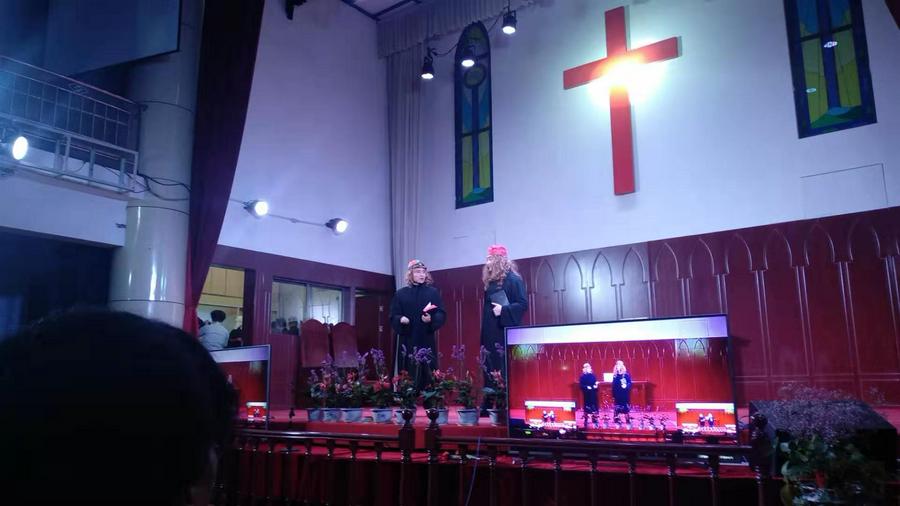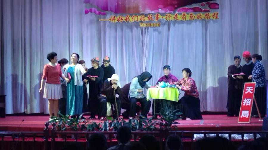 2019年3月4日晚,山西临汾基督教会城区堂灯光璀璨,适逢正月教牧人员培训期间,教会精心组织了一台文艺晚会,教会各团契弟兄姊妹载歌载舞,赞美主的恩典。此次圣工培训的主讲牧师蒲树忠、刘瑞山等和临汾各县市及牧区全体牧长、学员一起兴致勃勃地观看了演出。特别是本堂圣剧组自编自演的舞台剧《讲好我们的故事——席胜魔的牧师》再次登台演出,赢得了全场信众的阵阵掌声。