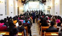 第一件事是教堂的预留座位。走进丰收堂一楼主堂,明显的看到在座位的正中间有几排“预留座位”。这是为什么呢?什么人有这样的“特权”?经过教会的王林彦执事和追思班负责人陈国伟姊妹介绍,才恍然大悟:原来大连基督教两会主席赵永刚主任牧师和教会针对一些团契负责人、班组负责人等中层负责人因为忙于应付各种事工,在读经、祷告、赞美、听道和灵修方面有些亏欠的现象,决定在圣堂设立预留座位,专门把这些处于“盲区、死角”的同工,在聚会的时候集中到这些预留座位上。