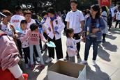 在环保马拉松活动中,自闭症儿童在家长和志愿者的陪同下,与普通的参跑者一起,沿芙蓉园曲江池规划线路慢步跑,捡拾沿线垃圾、维护美化景区环境。