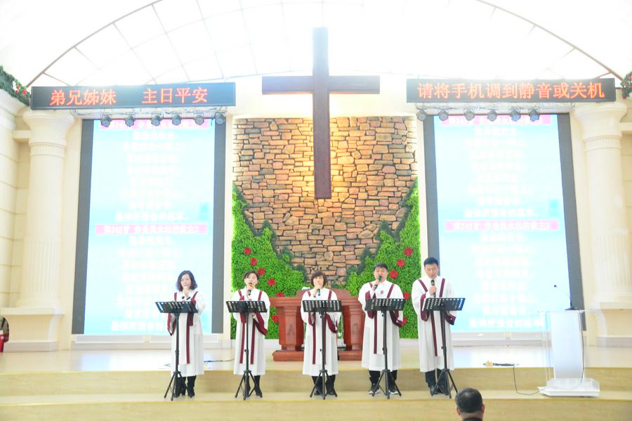 大约二十年前笔者来过崇恩堂,现在看到的却是一扫那个年代简陋、简易的旧貌,可谓旧貌换新颜。宽敞明亮的圣殿主堂,四块大型LED显示屏下,身着圣服的圣诗班同工和前来聚会的楼上楼下的会众在音乐伴奏同声中赞美三一的神。
