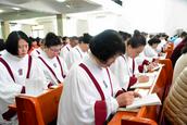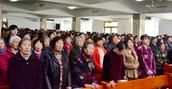 上午八点三十分,辽宁省基督教两会副主席、营口市基督教两会主席、崇恩堂侯玉洁主任牧师为主证道。侯玉洁牧师以《做敬神明理的基督徒》为专题的系列讲道,今天是第三讲:“君臣之礼—敬君”。她在与会众分享圣经有关教导之后,通俗易懂的将圣经中神的教导与现实结合,宣讲要“尊敬君王”的七点原因和“以斯帖的榜样”、“但以理三个朋友的榜样”等,论述了基督徒应具备的爱国爱教、荣神益人的品格和既顺服君王,又不屈服拜别神和偶像的基督徒操守,受到前来听道的会众热烈欢迎和反响,聚会主堂多次响起掌声,把荣耀归三一真神。
