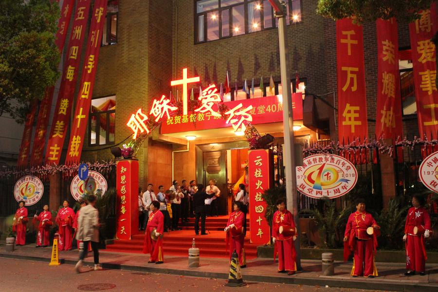 2019年4月8日晚,宁波基督教百年堂举办了“火柱云柱四十年”复堂40周年感恩晚会,晚会分为三个篇章:《爱的诗篇》、《神的恩典》、《春的礼赞》。