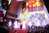 整个感恩庆典开始进入尾声,市区教会联合诗班献上大合唱《哈利路亚》,全场会众齐唱《耶和华所定的日子》,庆典在张耀波牧师的祷告和高建伟牧师的祝福中落下帷幕。
