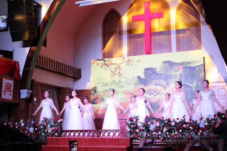 更有附有中国特色的民乐小合奏,二胡、琵琶、笛子加上大提琴,共同奏出一曲《主恩唱不完》,12位姊妹则献上一支舞蹈《十字架是我的荣耀》。