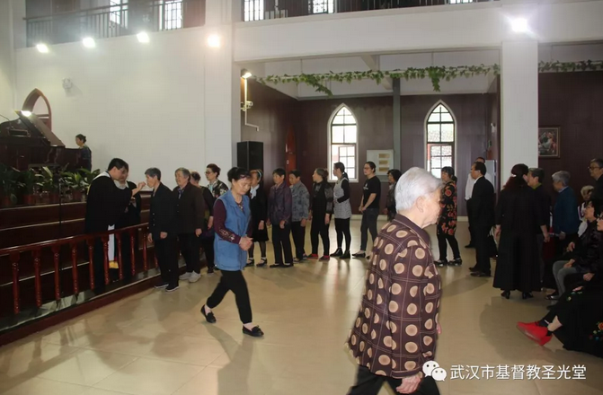 湖北武汉市基督教圣光堂2019年4月19日上午9点举行了受难日默想,冯念教师主礼,陈琴牧师分享《各各他山》,默想后举行圣餐礼,弟兄姊妹同领饼杯,纪念耶稣受难,感恩耶稣爱的救赎大工。