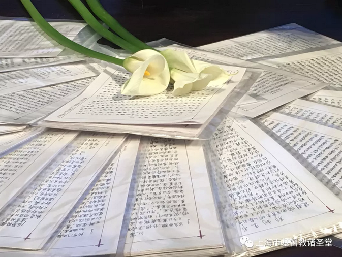 为纪念“百年和合”、并借此鼓励信徒勤于读经、践行《圣经》教导,上海市基督教诸圣堂发起抄写《圣经》活动,于三月伊始进行动员,本堂弟兄姐妹积极响应、踊跃参与,分别由各组义工、各团契、以及查经聚会的179位弟兄姐妹投入到《圣经》抄写活动中,历经一个月的时间,于复活节前圆满完成整本《圣经》的抄写工作。