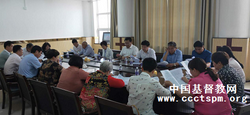 仪式结束后,常委扩大会议在圣同心堂三楼会议室召开。会议学习了汪洋同志来豫调研的讲话精神,指出宗教工作在党和国家工作全局中具有特殊重要性;要全面提升基层党组织的政治功能和服务功能;要善于运用法治思维和法治方式开展宗教工作;要积极探索宗教中国化的有效途径,希望我们努力引导宗教适应社会制度、适应社会道德、适应社会文化,使宗教中国化既有外在形象、更有实质内容;要支持宗教团体加强自身建设,要总结推广各地工作中的好经验好做法,全面提高宗教工作水平。
