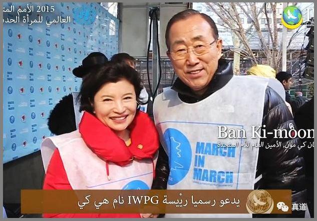 (新天地女二号金南熙与潘基文合影,潘因这张照片被迫退出总统选举;金已跟李万熙已分道扬镳)
