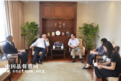 2019年6月10日,中国基督教三自爱国运动委员会主席徐晓鸿牧师在本会接待富勒神学院前院长毛瑞琪(Richard J. Mouw)、董事冯大卫(David Fung)一行2位来访。