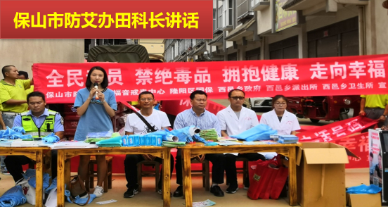 活动邀请了保山市防艾办田科长及西邑乡派出所何警司做了重要讲话,劝导人民群众爱惜生命、参与禁毒,还我隆阳一片无毒的天空;同时哀牢艺术团表演民族舞蹈让西邑人民群众深刻铭记每年的“6.26国际禁毒日”并参与禁毒;福音戒毒中心的学员献唱诗歌,表达自己戒毒的决心,同时劝勉人民群众要禁绝毒品、拥抱健康、走向幸福。